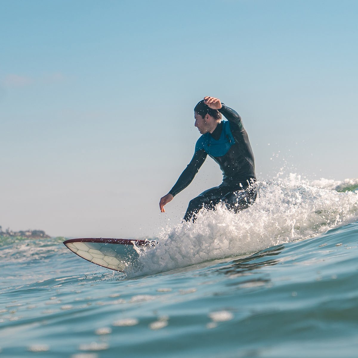 The Eggy is a kind of mini longboard for small waves under 1m20. It is addressed to intermediate beginners. It is a stable board, with boxy rails and low rocker for stability and good wave entry. A single concave to vee has been designed to keep the maneuverability. It can be ridden as a 2+1 to get the classic "down the line" ride.